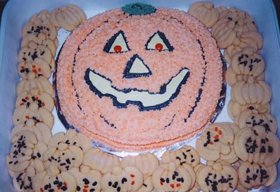 I made this for my husband's work. I also made pumpkin shaped cookies using a cookie press.