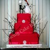 Nightmare Before Christmas Red Fondant Wedding Cake With Brooches And Branches And Satin Ribbon