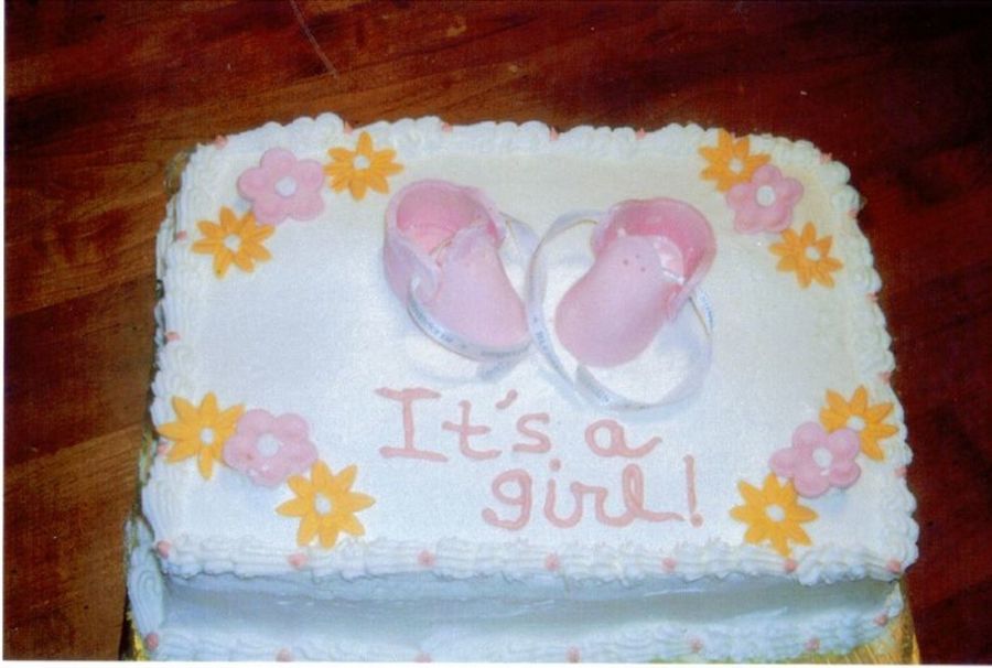 Great job on the booties and flowers, cute cake!
