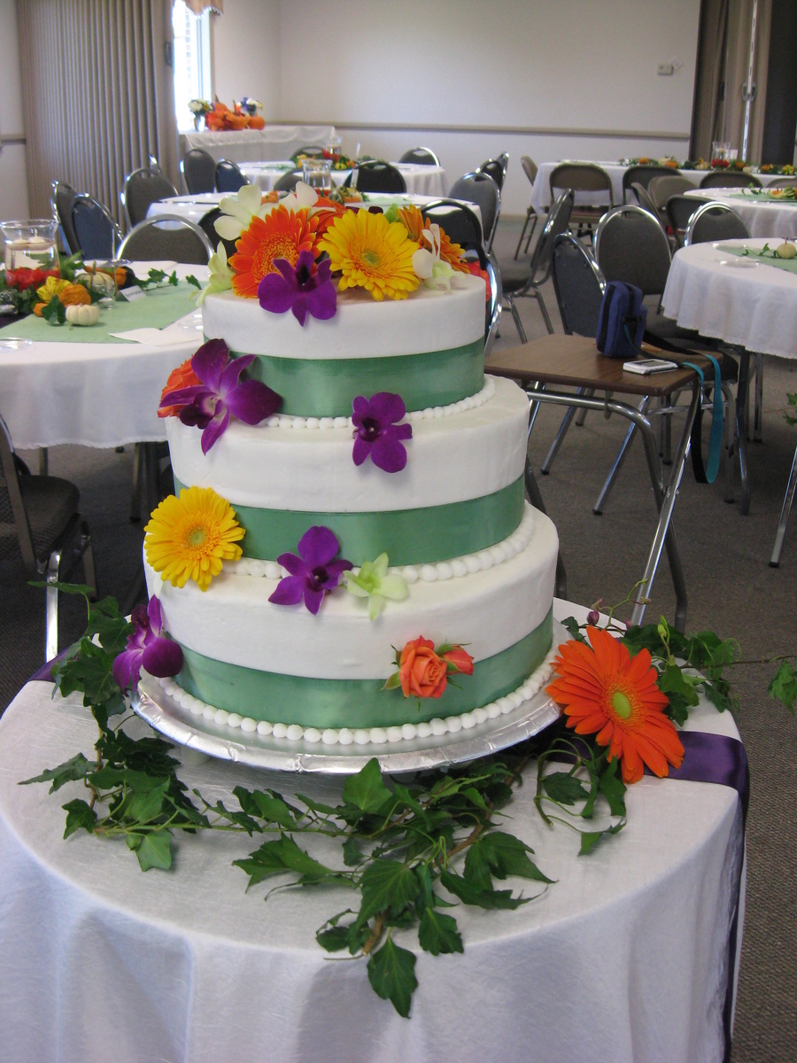 Three layer yellow and white cake with raspberry filling.