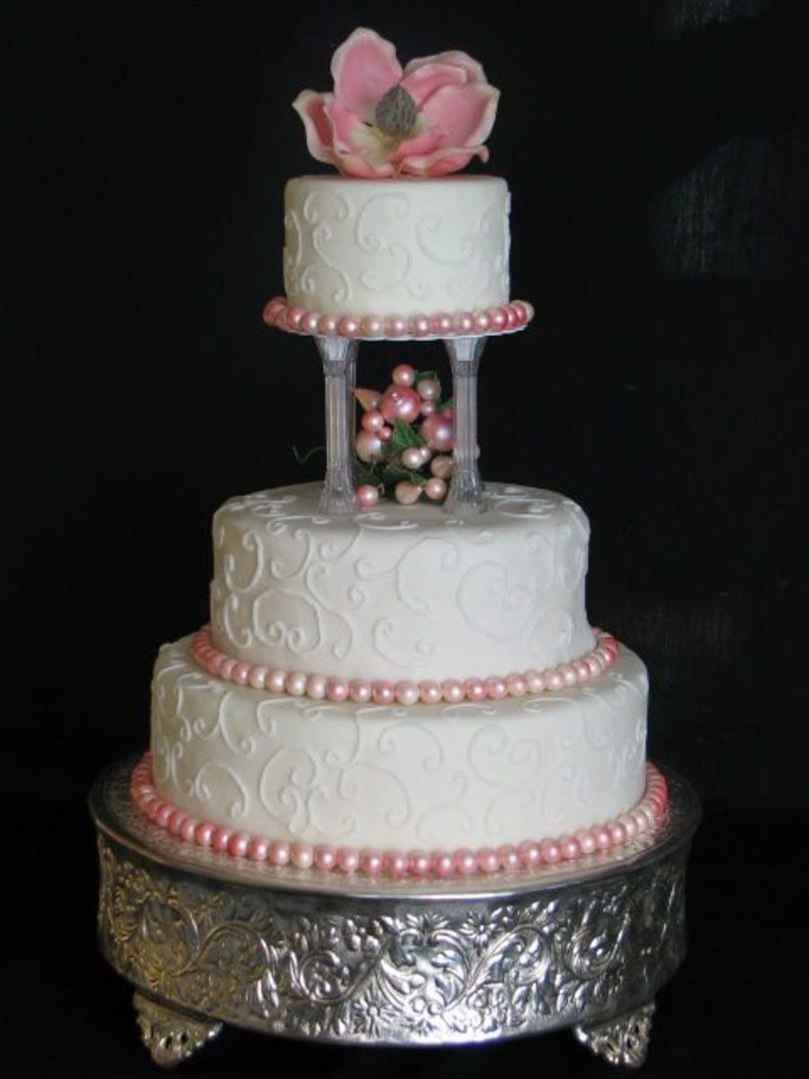 I got the topper and beads from Hobby Lobby I believe...of course, if someone ordered it I'd do fondant/gumpaste. That would make this cake quite expensive (in my book)...I'd say about $225 for a 6,8,10. The picture is actually a 6, 10, 14.