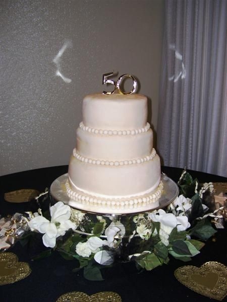 You know, you just can't beat that clean and simple look with fresh flowers. I bet everyone loved the cake and the anniversary couple were extremely happy. Thanks for sharing your photo.