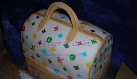 Cake done for a 50th Birthday. Chanel purse, shoe box(9x13 cut in half and stacked) and top of Nordstrom bag is cake. The shoes are made of fondant.
