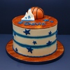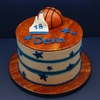 An extremely last minute cake I made for my daughter's teaching assistant - as a huge favor to my daughter :) It is vanilla cake, frosted with vanilla buttercream, and filled with vanilla and chocolate buttercream. The basketball is rkt and fondant, and all other decorations are fondant.