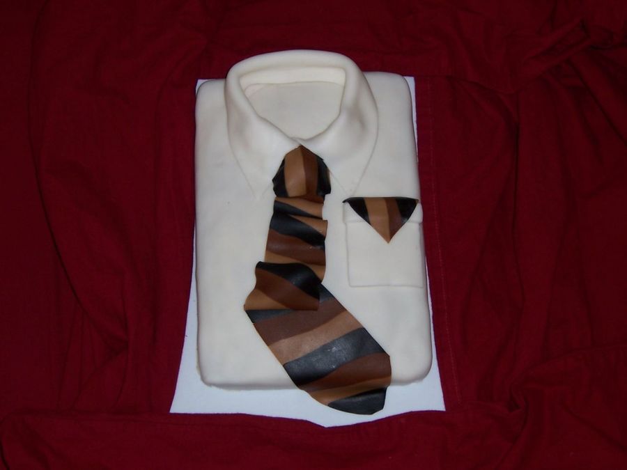 mariavictoria, thank you so much...it was a lot of fun! The collar is fondant rolled out and shaped...since this was my first cake, my lesson learned with the collar is that I should have stuffed the collar to provide support. I'll use wax paper in the future. The tie is equal amounts of each color fondant rolled out about a 1/4". You want it pretty thick so that you can manipulate the tie fairly easily. Then cut the different colors in diagonal strips and roll them together.
