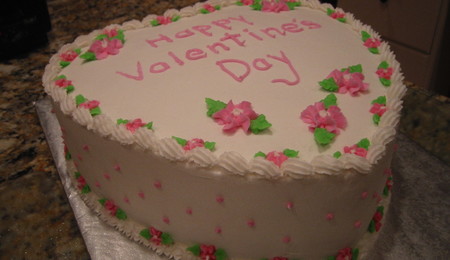 8" Red Velvet Cake with buttercream icing. Buttercream Poinsettia's on top and one on bottom border. Tip 18 and 104 top border, tip 3 dots on sides with tip 18 star bottom border. Perfect Christmas dessert.