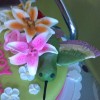 Hummingbird made out of colored gumpaste, sugar flowers, gumpaste bow and fondant decor.