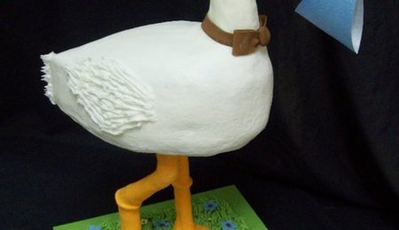 Bodies are sculpted from cake and iced in buttercream; heads sculpted from styrofoam and covered with fondant.
