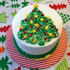 Swirly Christmas tree buttercream design with fondant stars and candy pearls.