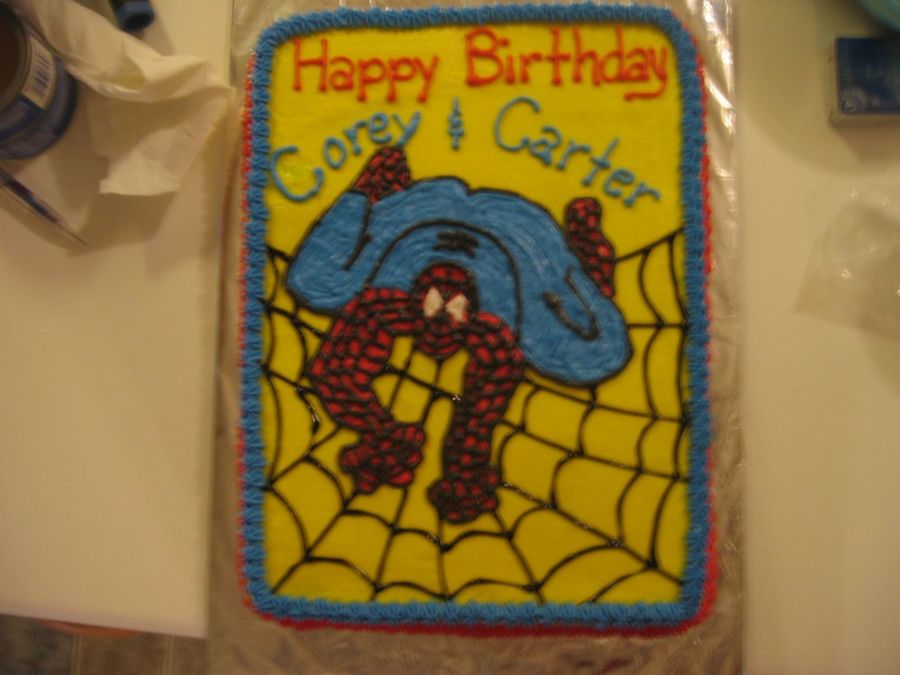 I really had a time with this cake. It is all bc icing and all the work is freehand. The cake is fudge marble with bc. I wasn't thrilled with it, but my customer loved it and wants me to do another spidey cake in two weeks.