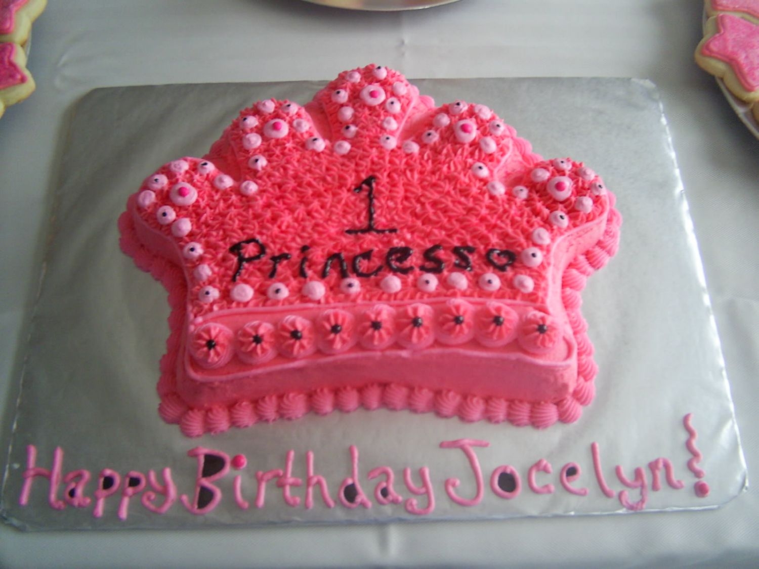 The cake is a wasc with almond/vanilla bc along with the cupcakes. I also made sugar cookies on a stick to be like fairy princess wands.