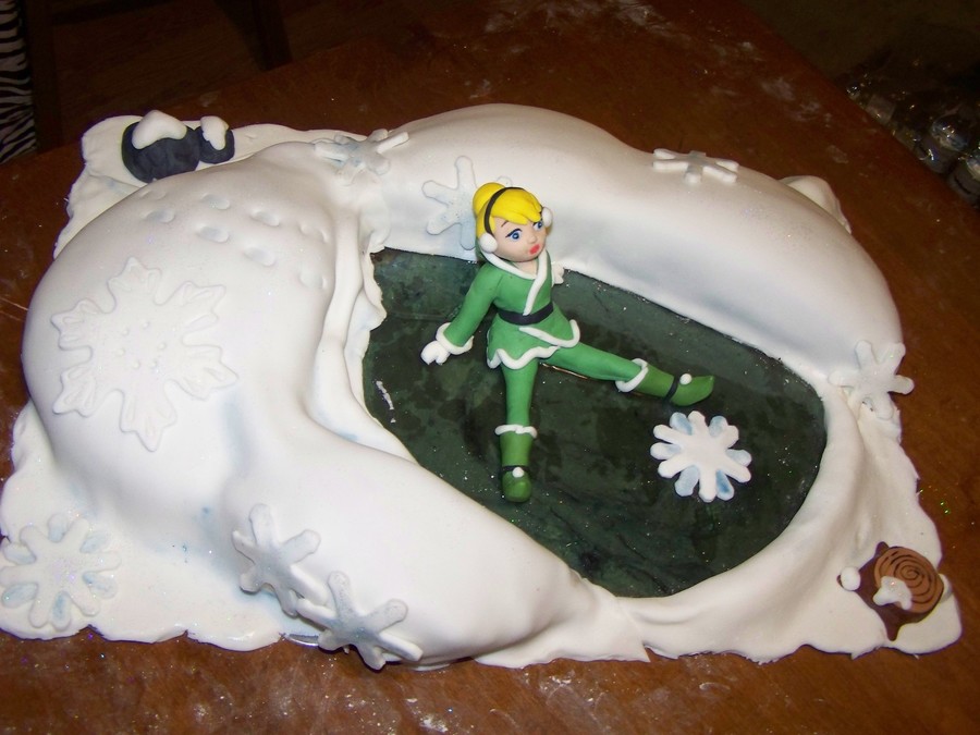 i was asked to make a cake that had both Tinkerbell and winter in it so I thought about this scene in the lastest movie, She loved it