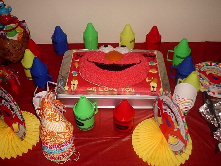 This was my first birthday cake. My son loves Elmo, so we did an Elmo theme. I loved decorating it and he loved eating it LOL. This is decorated with butter cream icing. I didn't realize how hard it was to get it the right color red.