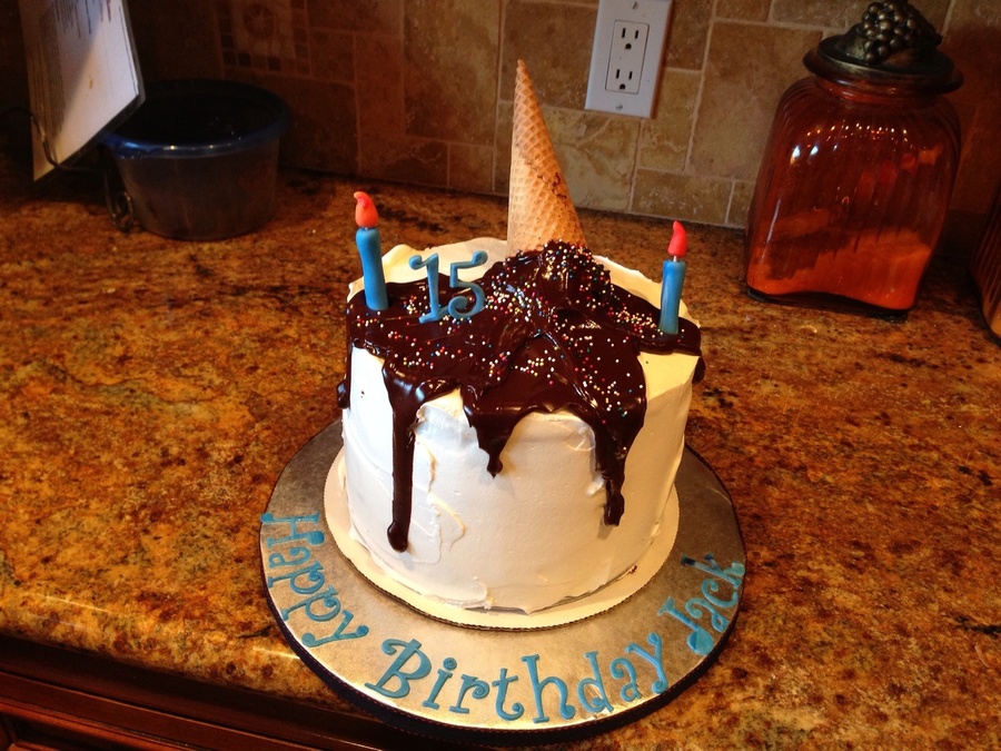 Saw this on Pinterest and knew it would be perfect for my sons birthday. 3 layers of Chocolate cake and 2 layers of Oreo cookie ice cream. Whipped Pastry Pride for the frosting. Ganache dripping down. Fondant candles. Sprinkles on ganache.