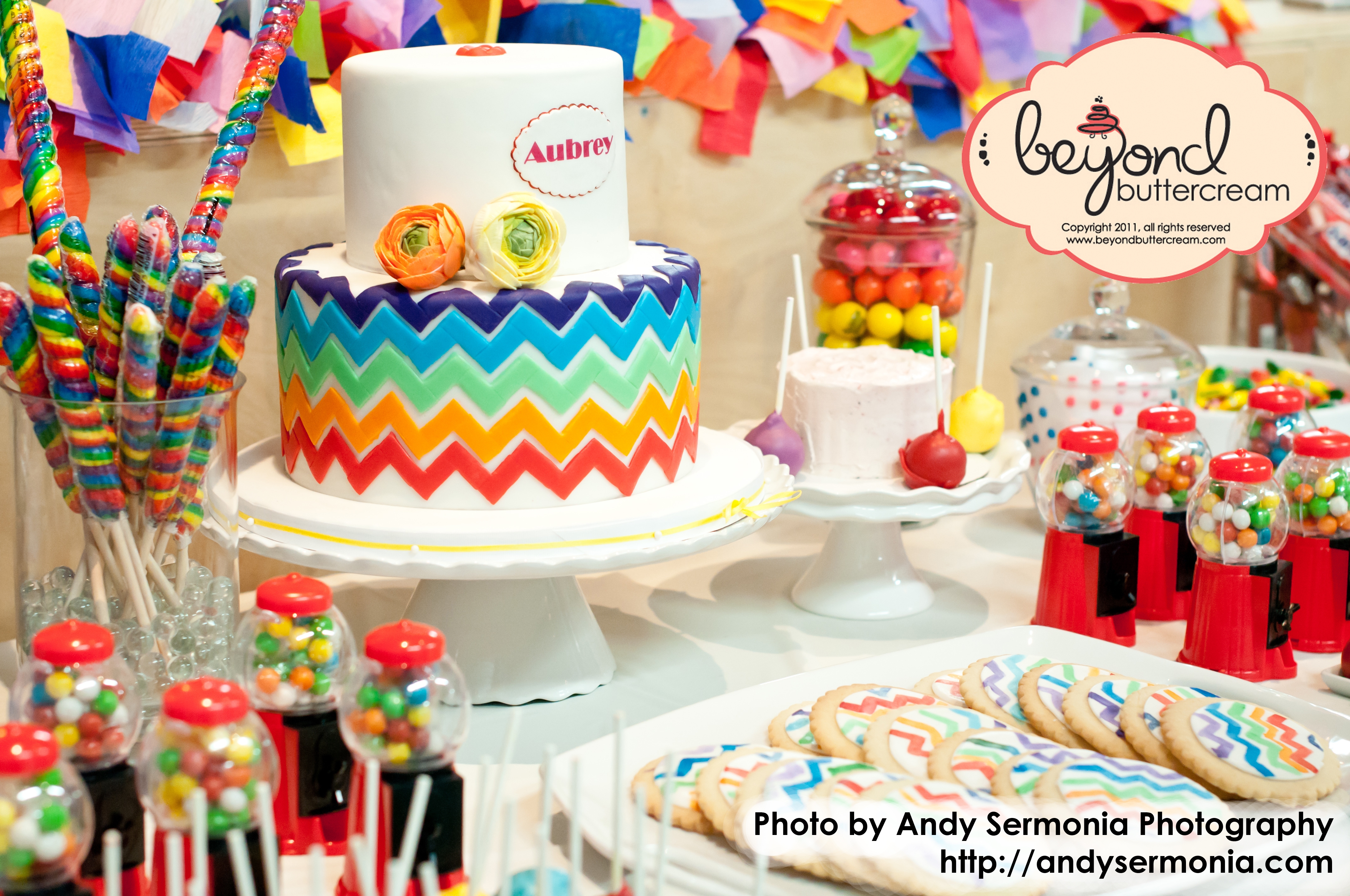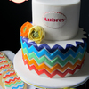 Strawberry cake with vanilla buttercream, white chocolate ganache and fondant, with edible image plaque, sugarpaste ranunculus and rainbow chevrons. I also made matching sugar cookies.
