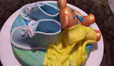 Cookie4 on 13 Mar 2007 , 6:07am This is just precious, I love the use of the blankets (all layers on the cake and on top of the baby) plus the little teddy. You did an awsome job!