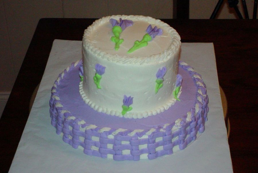 2 tier lavender basketweave with sweetpeas