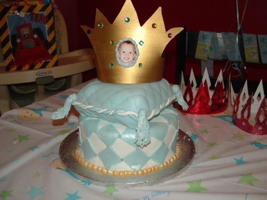 I did this for a one year old's "prince" party. I originally did the crown out of fondant but it fell apart at 2:30 am the day of the party - so this one is made out of cardboard and I attached fake jewels. Next time - I'll know to use gumpaste instead of straight fondant to make sure it dries! But the pillow was a hit - when I started cutting it - everyone was shocked cuz they all thought - even the little kids - that it was a real pillow!