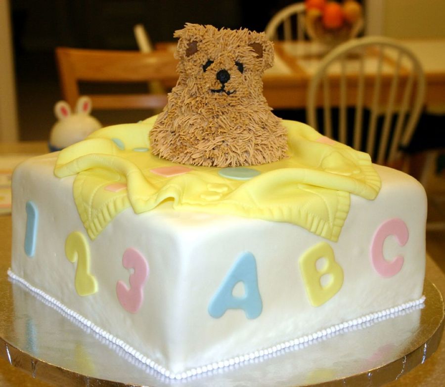 I love the way the blanket came out on this. I can appreciate because I made a yellow fondant blanket on one of my cakes. I like the way the edges look real.