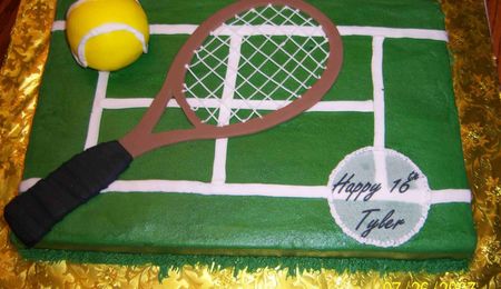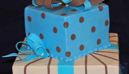 Ombré blue with fondant ruffles, ruffle flowers and some piping details