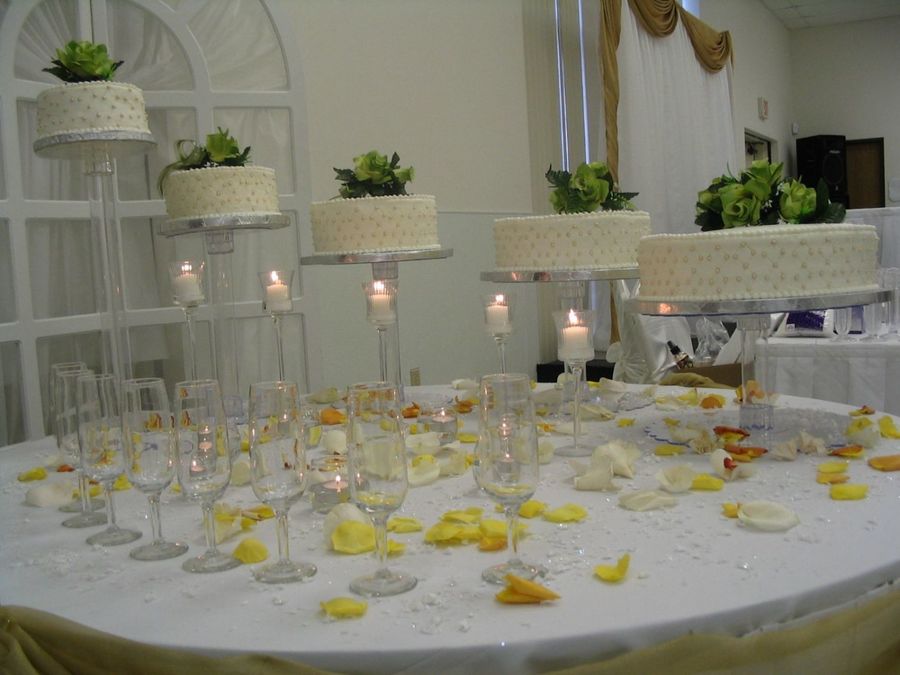 My first wedding cake done for a friend, free of charge, as a buisness kick-off. It took me about a week to make the icing, bake five cakes, which are 6", 8", 10", 12", and 14". It took me a whole day to bake those cakes. I learned my lesson that I shouldn't procrastinate about starting early. I would love to hear your suggestions and comments, they help improve my ability to make the perfect wedding cake. THANKS!!!!!