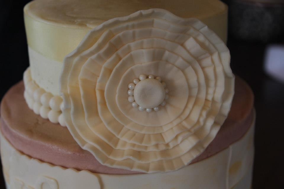 Vintage Birthday cake. iced in buttercream with fondant flower and decorations.