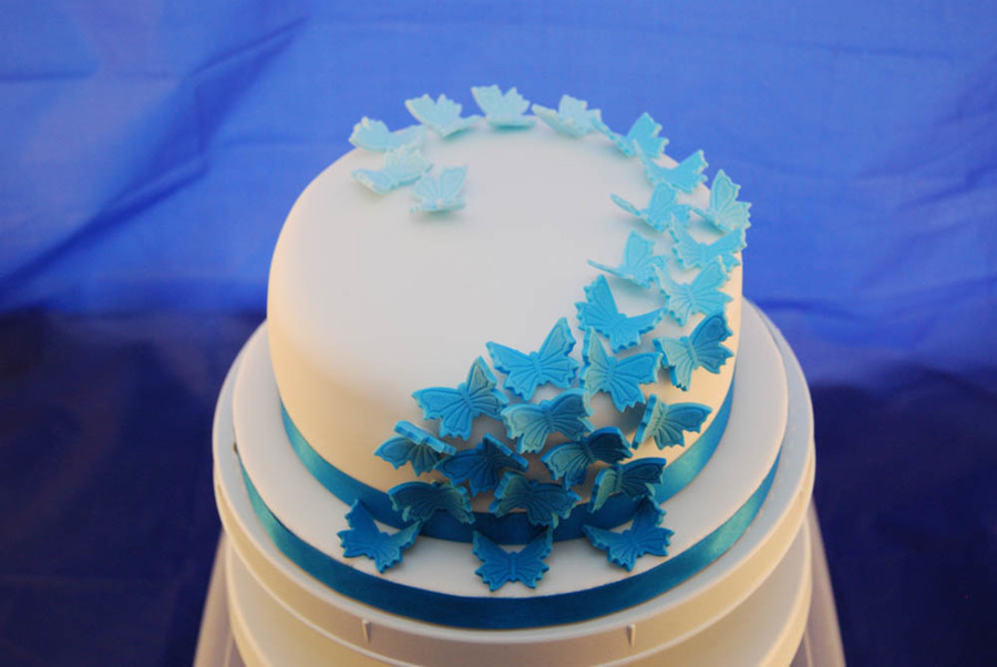A cake I made for my grandma's 92nd birthday with butterflies in her favourite colour.