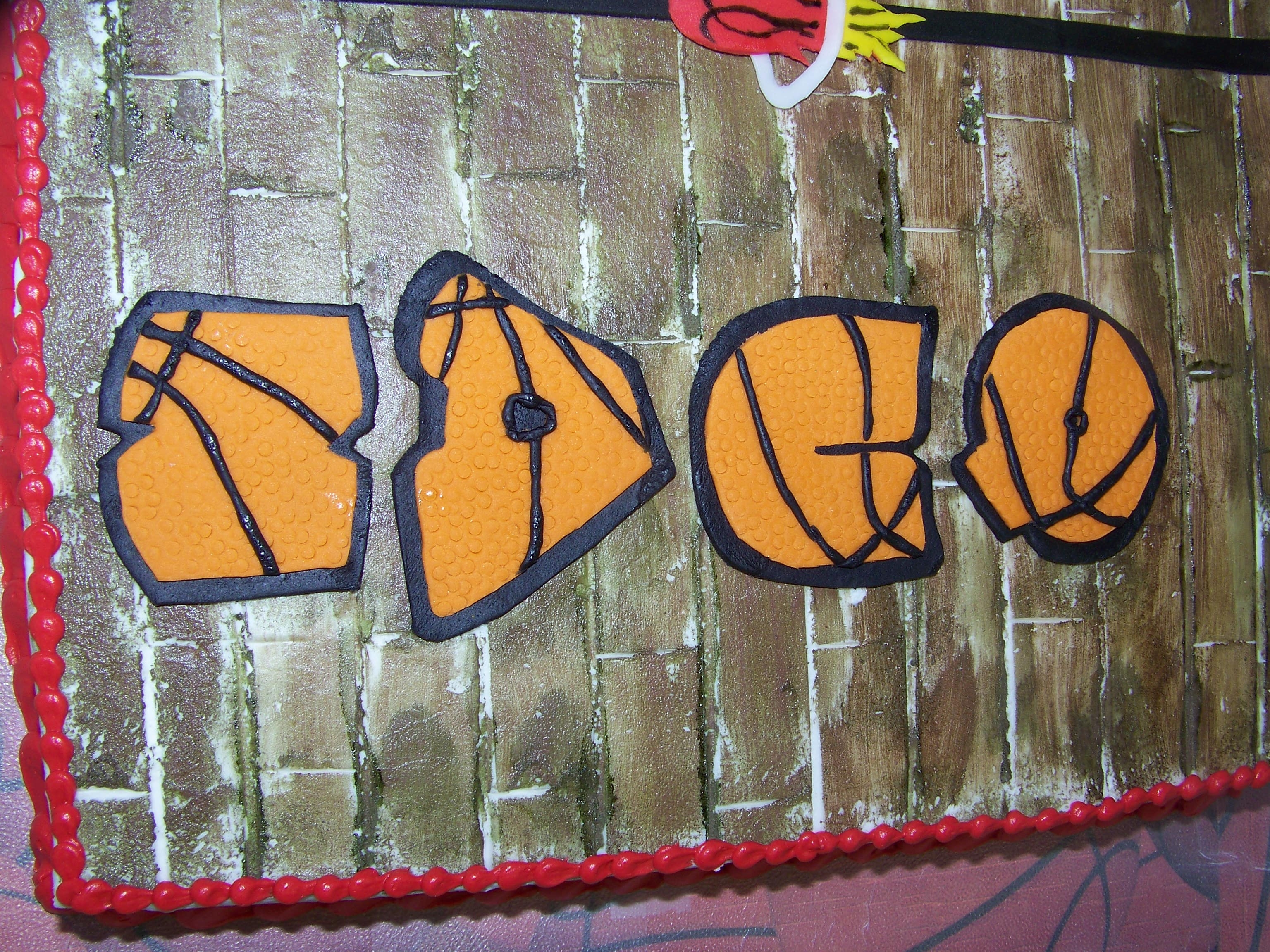 Cake for a 10 year old's birthday exactly as he described it to me, lol! He is a Miami Heat, Lebron James fan and wanted the Jumpman in his jersey dunking the ball!