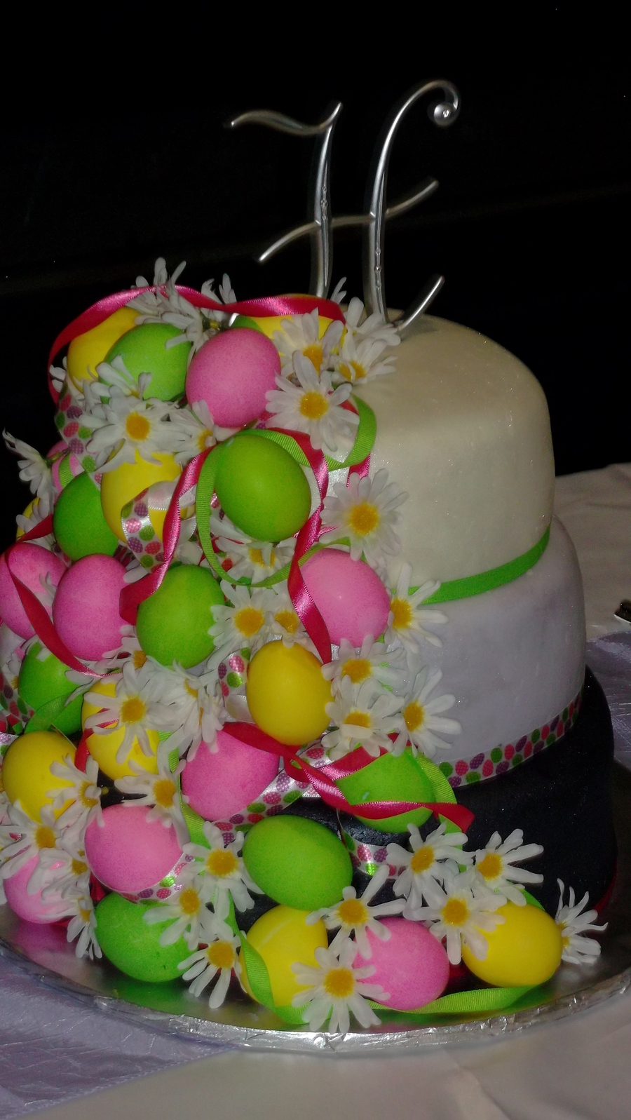 Easter Themed Wedding Cake Chocolate Cake With Raspberry Filling Buttercream Covered In Fondant Topper Real Eggs And Ribbon Are Not Edi