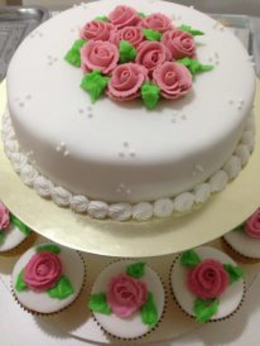 * It´s my final cake on Wilton basics. I made some cupcakes to match the cake.