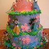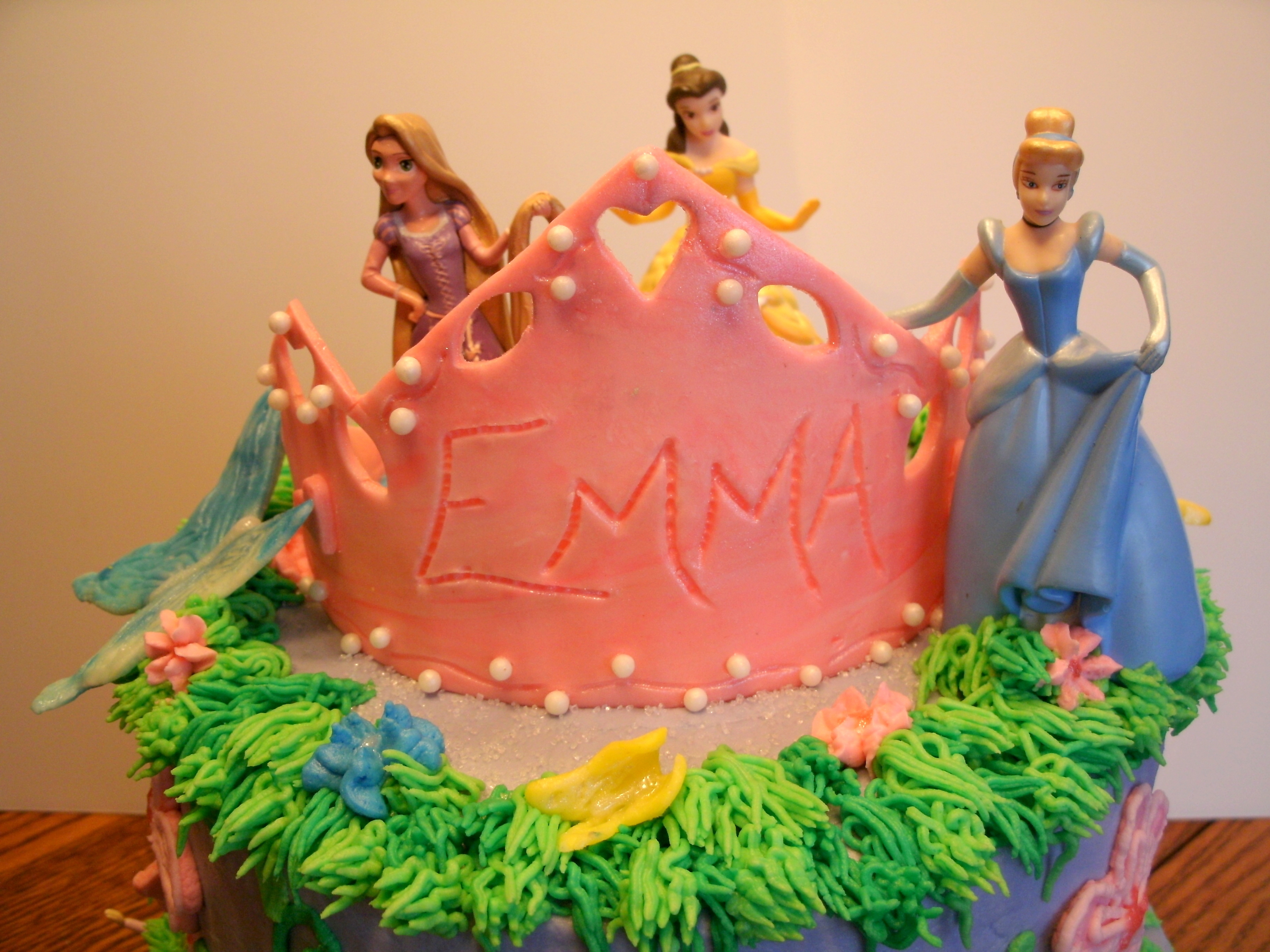 Disney Princesses 2nd Birthday cake! All buttercream, with candy clay butterflies and tiara! The Princesses are for the birthday Princess to keep and play with! The flowers were made to match the invitation! :) This is 2 layer stacked 8in and 10in cake.