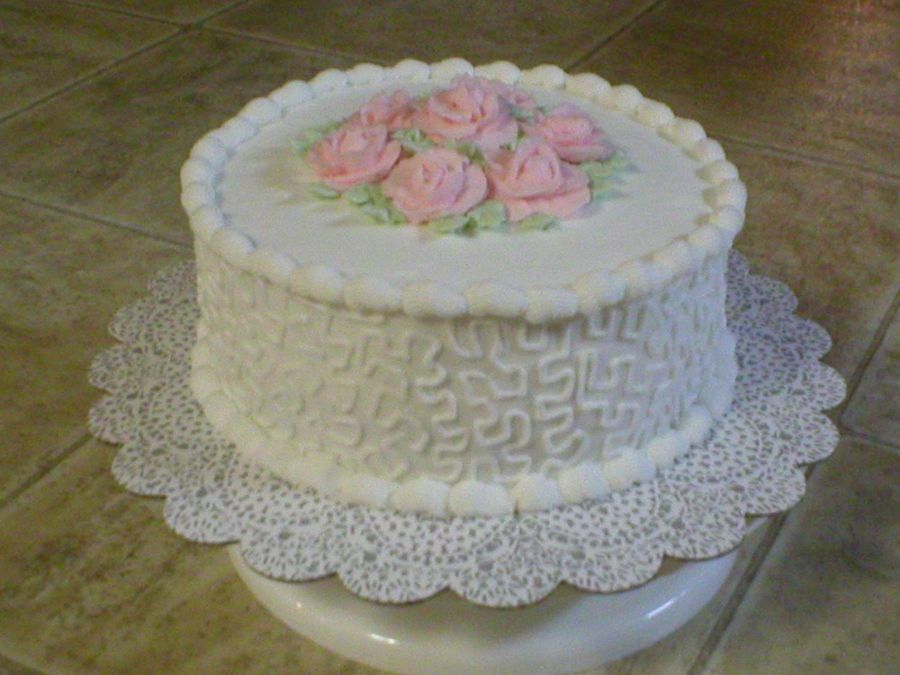 Buttercream frosting and roses. Red Velvet Cake.