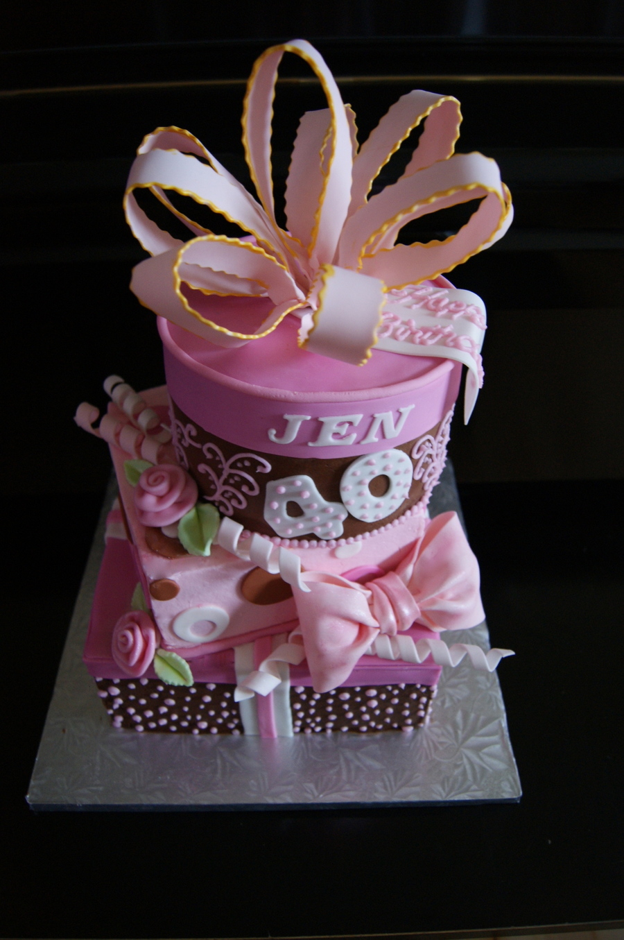 Present cake with chocolate buttercream finish with fondant and gum paste details.
