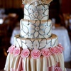The cake was styled to match her GORGEOUS Ysa Makino wedding gown. Fondant and gumpaste details and flowers. I did use real rhinestone hair pins to give the extra 'bling' the bride wanted