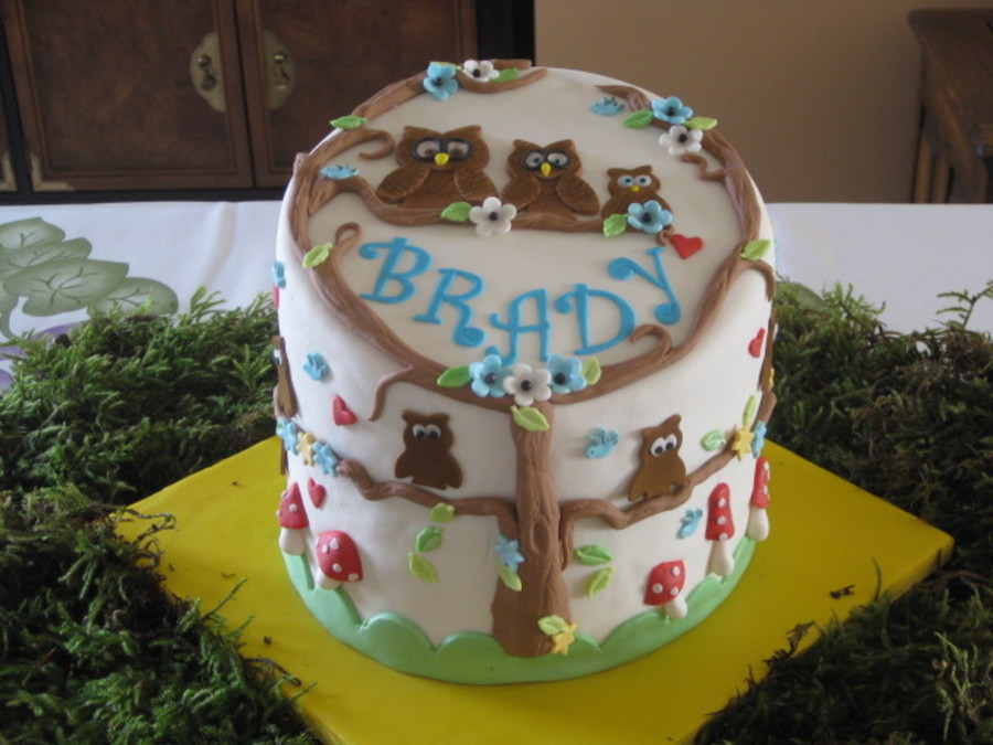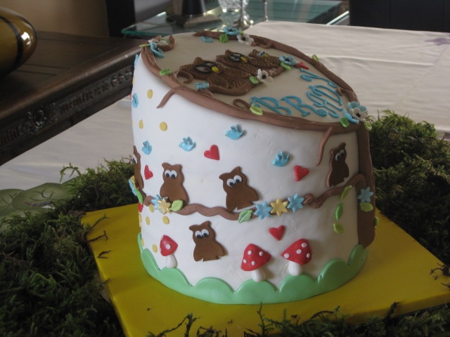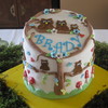 Made this for my daughters bby shower - our first grandchild! Six layers to get the height with the top slanted to get a different shape. All fondant decorations -- this one was alot of fun to make.