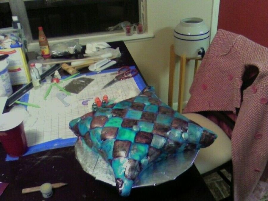 thanks for all your super comments. I just sculpted a 16 in. red velvet cake. Covered with fondant and a straightedge to make the pattern used gel color mixed with lemon extract to paint and then covered with silver dust mixed with lemon extract