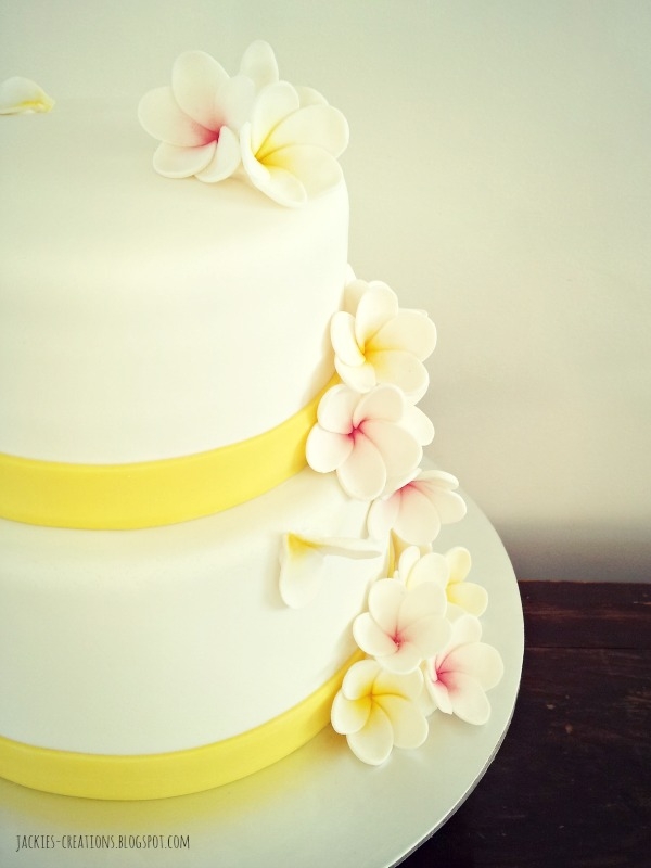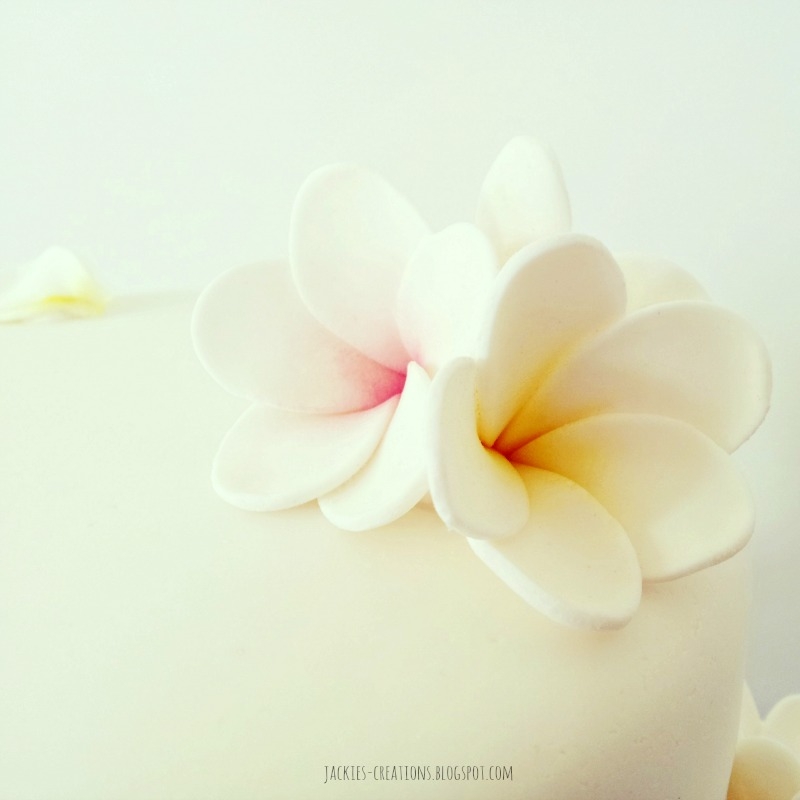 I made this cake for my friends who had their NZ wedding reception this past weekend. They got married in Rarotonga a couple of weeks before that and wanted to represent that in their cake, hence the frangipanis :-) I hope you enjoy browsing through the photos. Stay blessed! TFL xo
