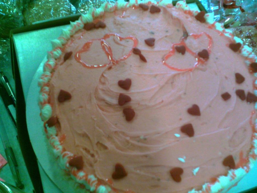 Very simple Valentine's cake I did for a bake sale. My second cake ever