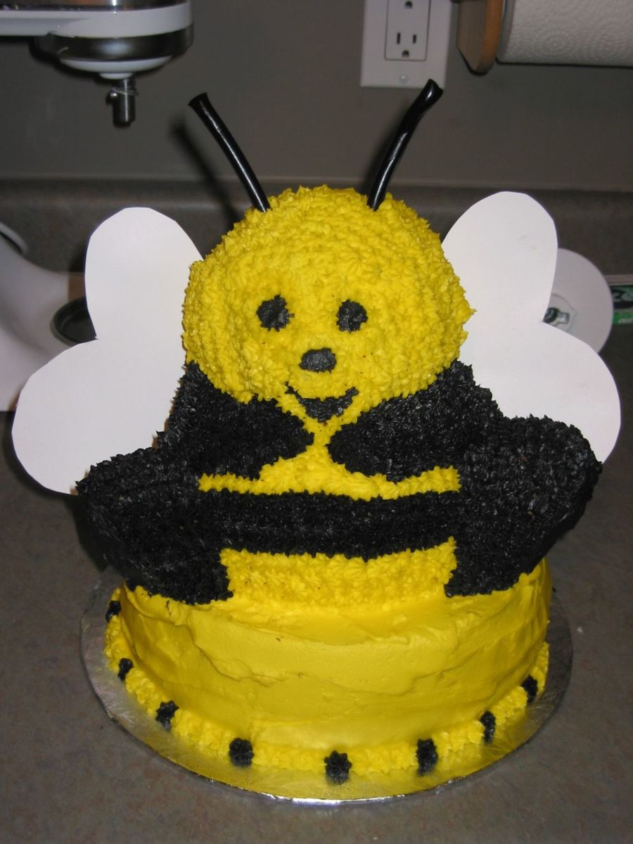 A student of mine loves bees and so I made her a bee cake. The bee is actually the stand up teddy bear pan