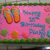 9 x 13 butter yellow cake with buttercream .. made for my niece who just turned 15.. She requested bright pink and green and for it to have her nickname "Pinky" and the rest was left up to me