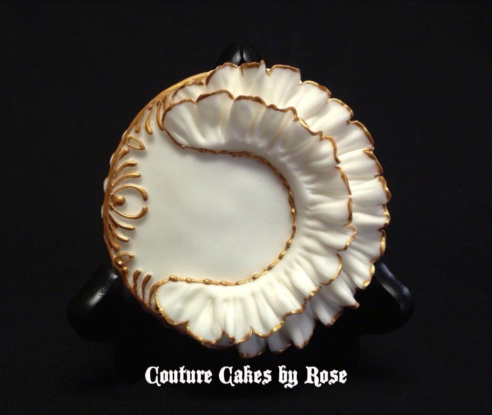 I made these cookies to celebrate my wedding anniversary to the man who patiently bear with me through all my caking highs and lows. I used gold (again) as part of the accent color to "hope" that we will be together past our golden wedding anniversary (mind you, we're not even on our 10th year yet so we still have a very long way to go). I love the pop of red on one of the cookies as I think it brought the design together. Ruffles and gold-two of my fave elements on a design, I couldn't be happier :) xo-Rose