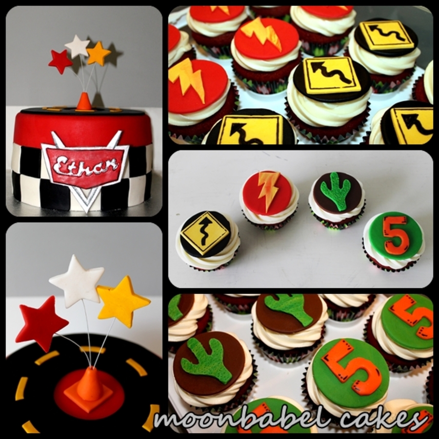 CARS themed birthday cake. Red velvet with cream cheese BC filling. Fondant and gumpaste decorations