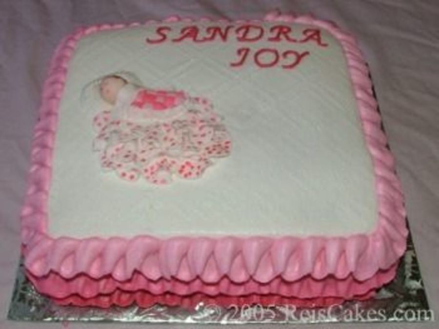 The baby and cradle is all handcrafted fondant. The rest of the cake is buttercream.
