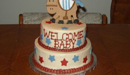 10" and 6" round cakes iced in ivory buttercream with champagne chiffon ribbon and real gerber daisies.