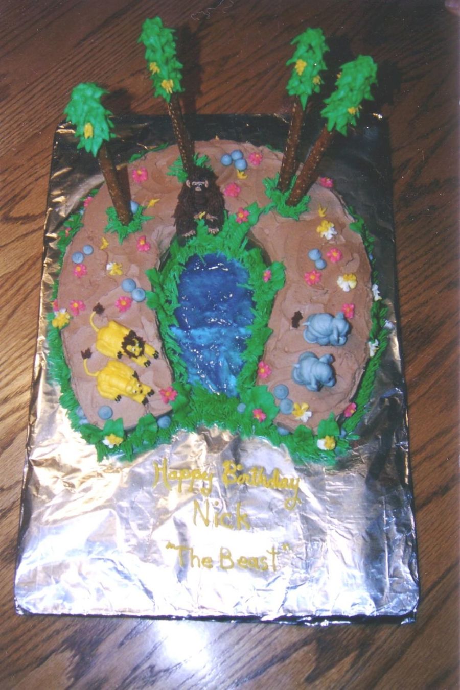 For my son's 16th birthday "The Beast" It is a variant of the Wilton idea, water is piping gel, tree trunks are pretzels, all figures are buttercream. Art direction by my other children, including the elephant doo doo.