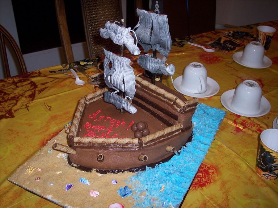 I made this cake for a pirates of the caribbean party. The sails are not edible.