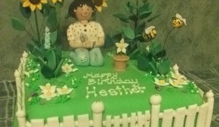 cake topper with the inspiration taken from an old photo of a lady turning 60 of when she was a singer