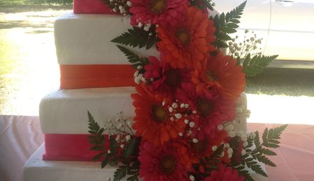 Layers Are 1412108 For 275 Servings Flowers Are Artificial As Per Request Of The Bride Leather Leaf And Babys Breath Are Real