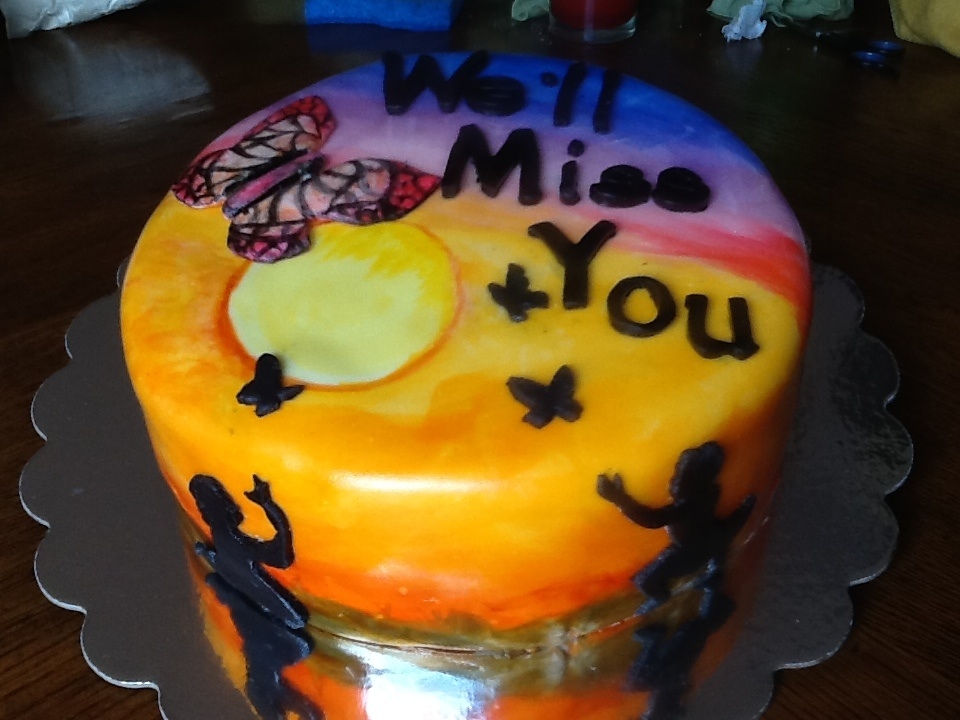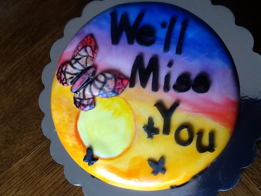 It was my first time covering a cake with ganache, Waac cake, with vanilla mouse and ganache filling. The butterfly on top wings wear suppose to be upright, but i didn't have drying time. Learned a little more with this cake