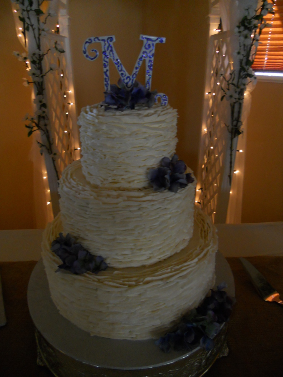 14", 10", 6" - Buttercream frosting using a #104 rose tip for ruffled sides